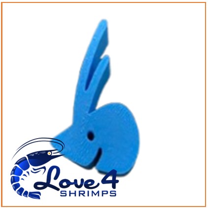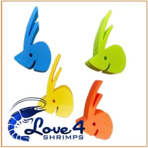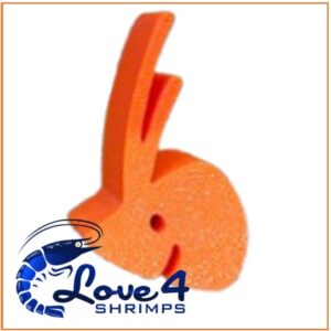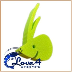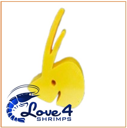 Een lollyhouder in de vorm van de gestileerde garnalenkop van het merklogo SHRIMPYS.